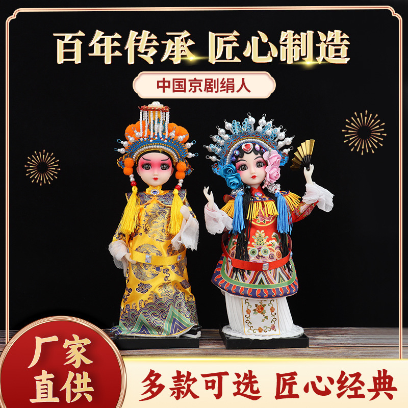 京劇の9寸の人形の戯曲の絹人の人形の中国の特色の民間の工芸品は海外の贈り物を飾っています。