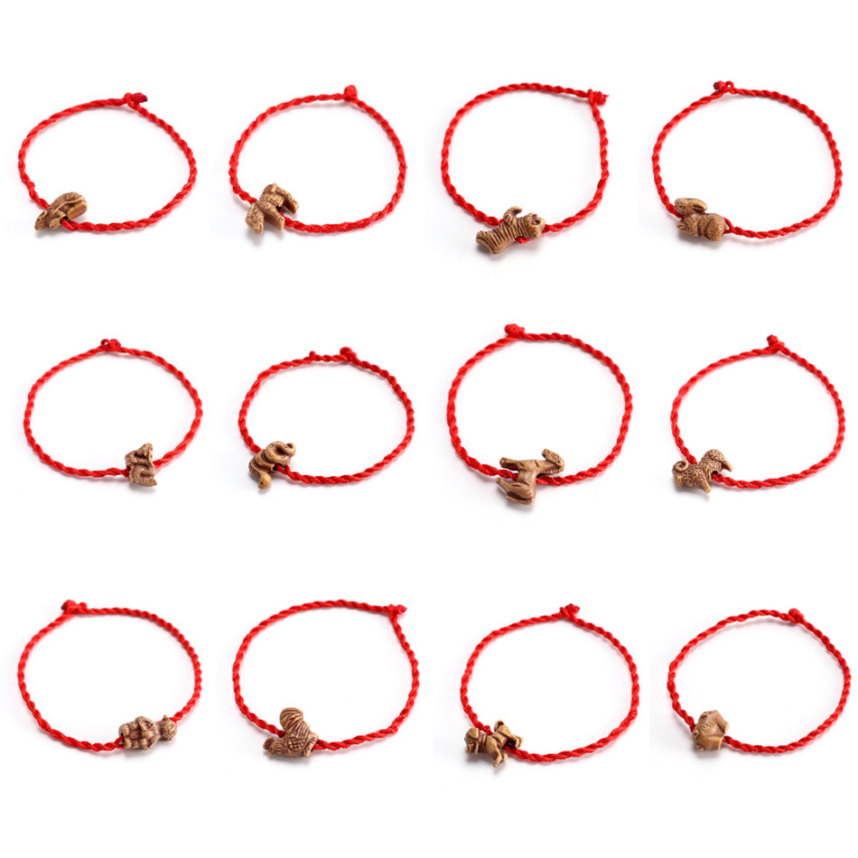 本命年の赤い縄の桃の核の十二生肖の赤い縄のブレスレットのチェーンのネットの店の小さい贈り物の露店の卸売り