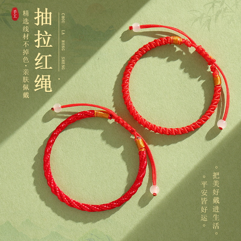 エスニックスタイル手織りシンプルな男性と女性のカップル赤いロープブレスレット干支年 Yingluo ロープブレスレットギフト卸売