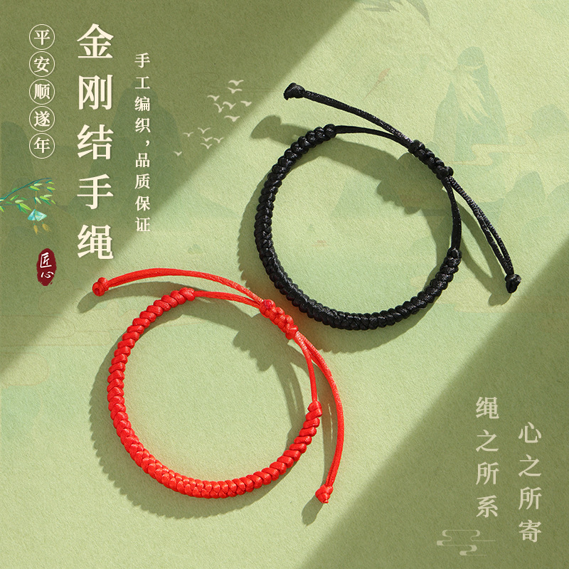 手工编织金刚结红绳手链民族风可调节大小男女情侣本命年手绳批发