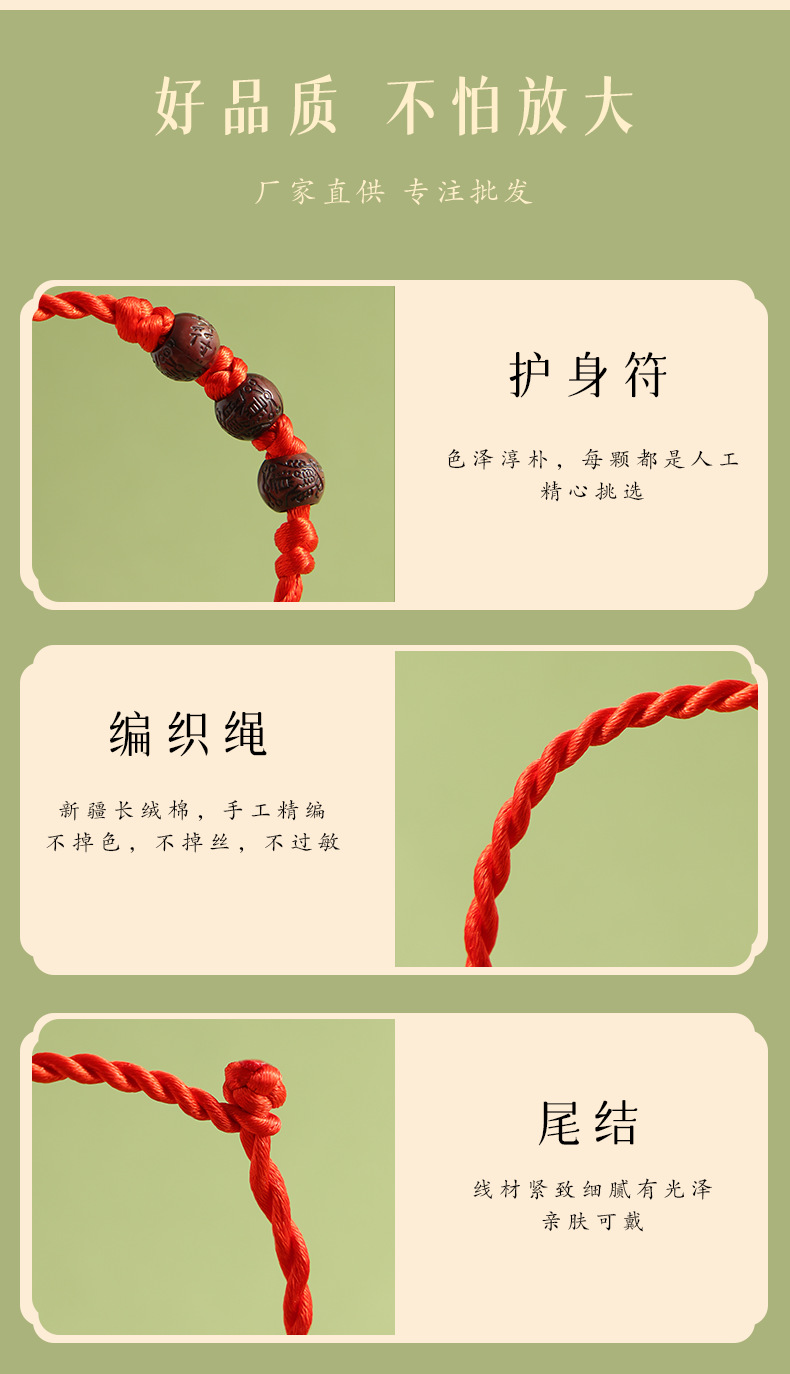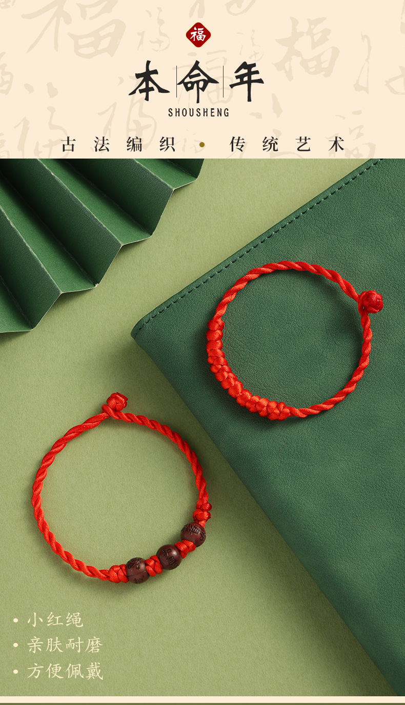 干支年編みブレスレット カップルモデル 3つ結びお守り 干支年編み赤いロープブレスレット ブレスレット卸売