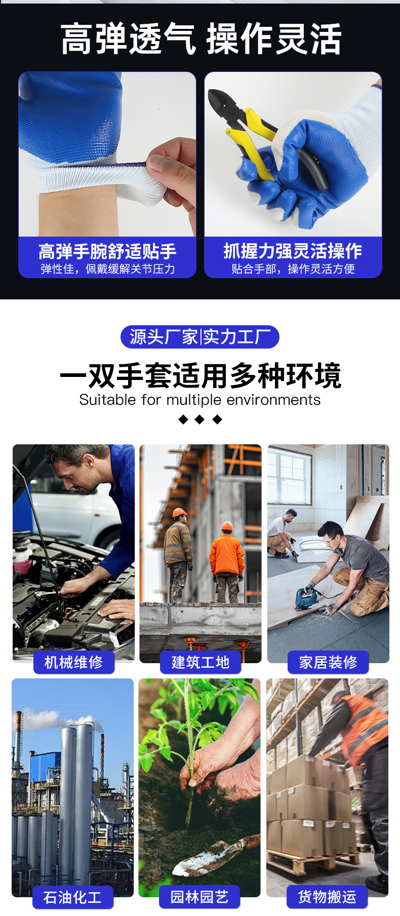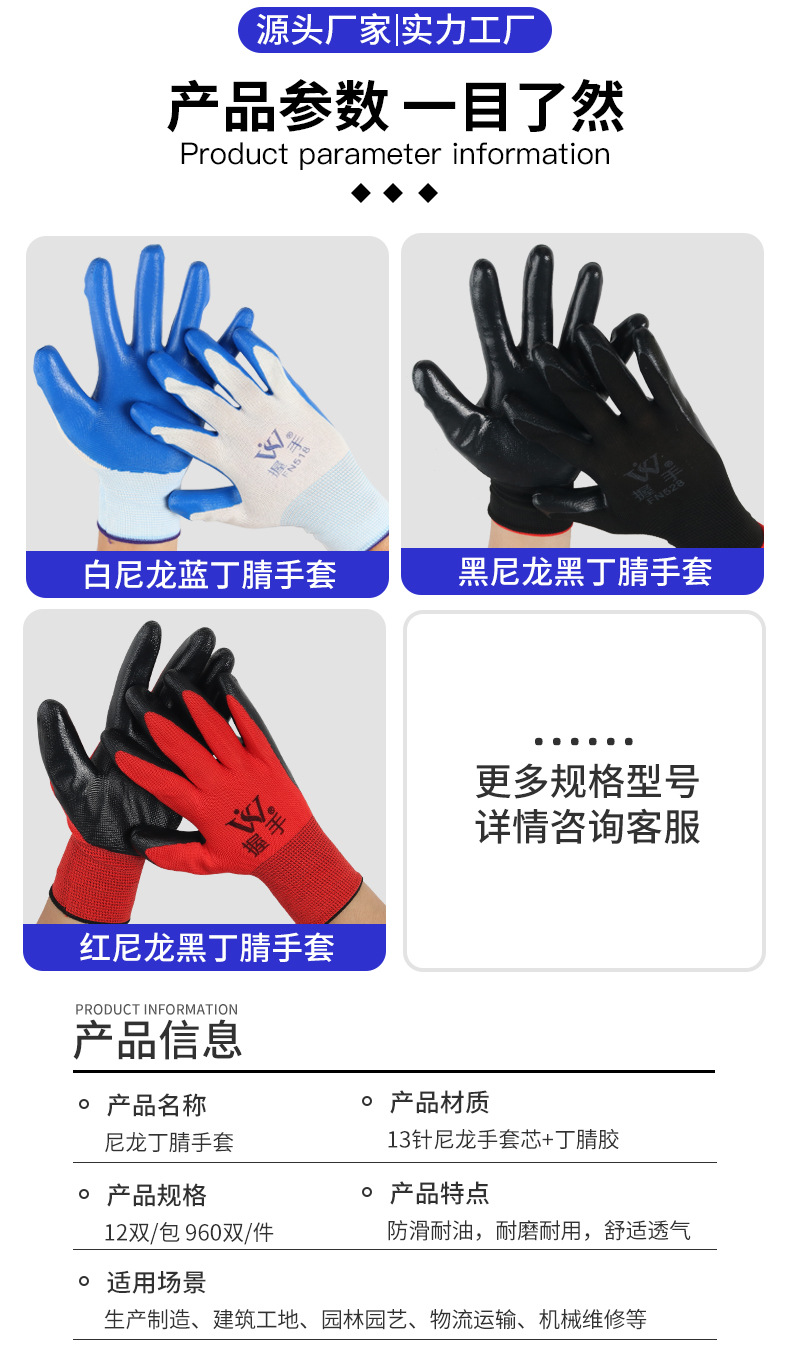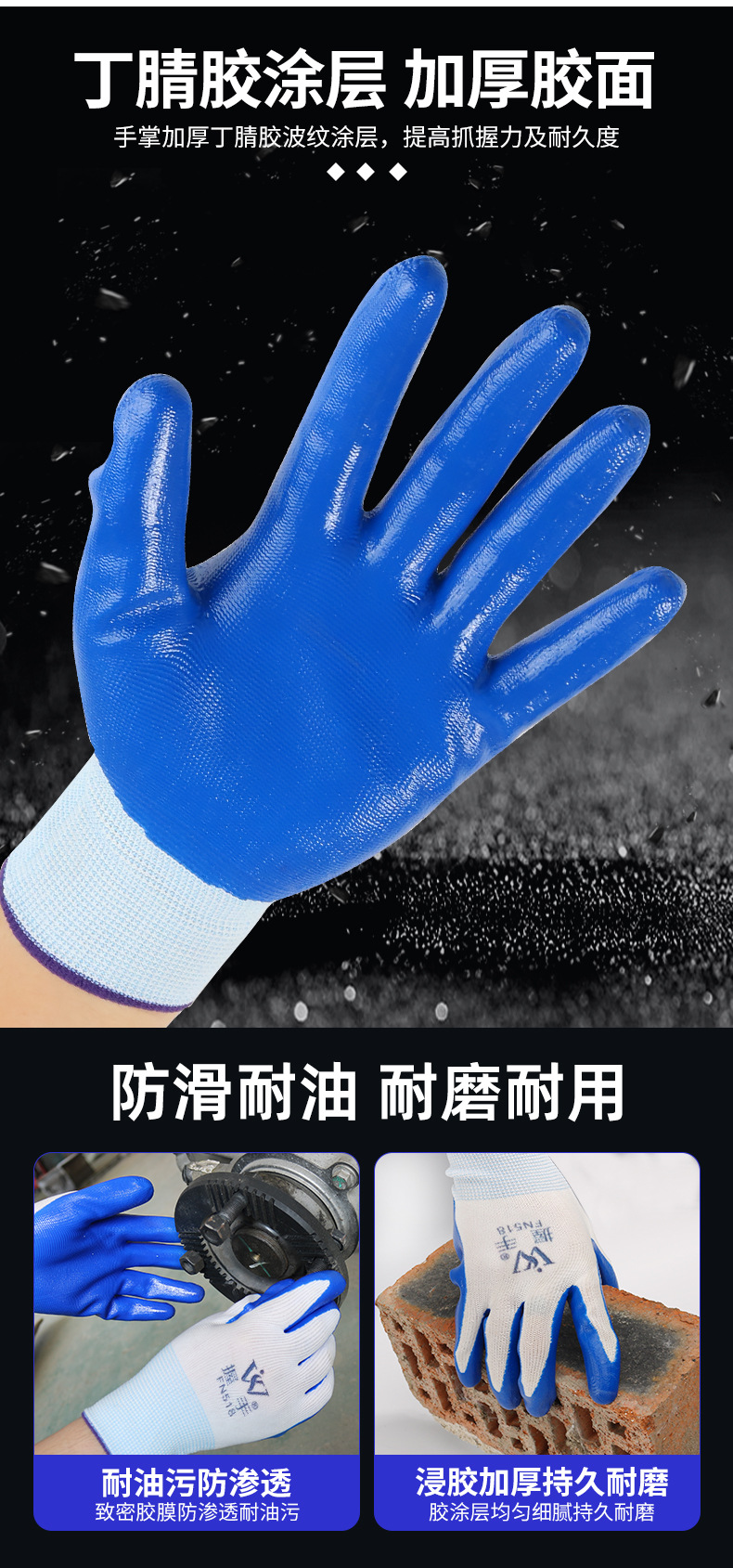 手袋卸売 労働保護用手袋 耐摩耗性 ニトリル浸漬ゴム ニトリルラテックス 滑り止め 工事現場作業用ゴム