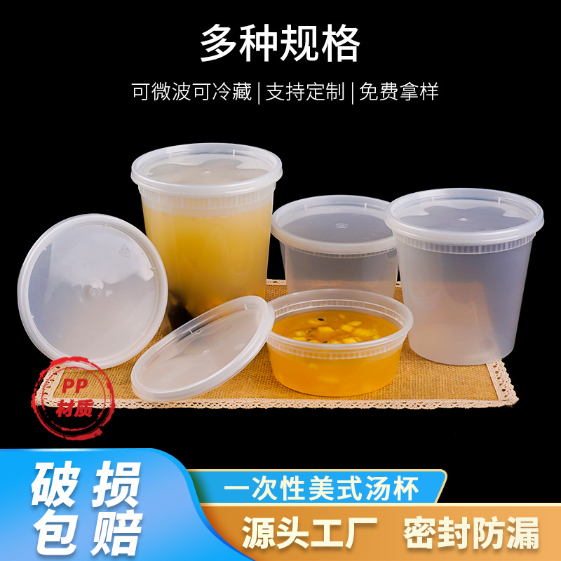 使い捨てプラスチックボウルの丸いスープボウルの出前スープカップの透明包装粥カップ密封スープバレルのアメリカ式ランチボックス