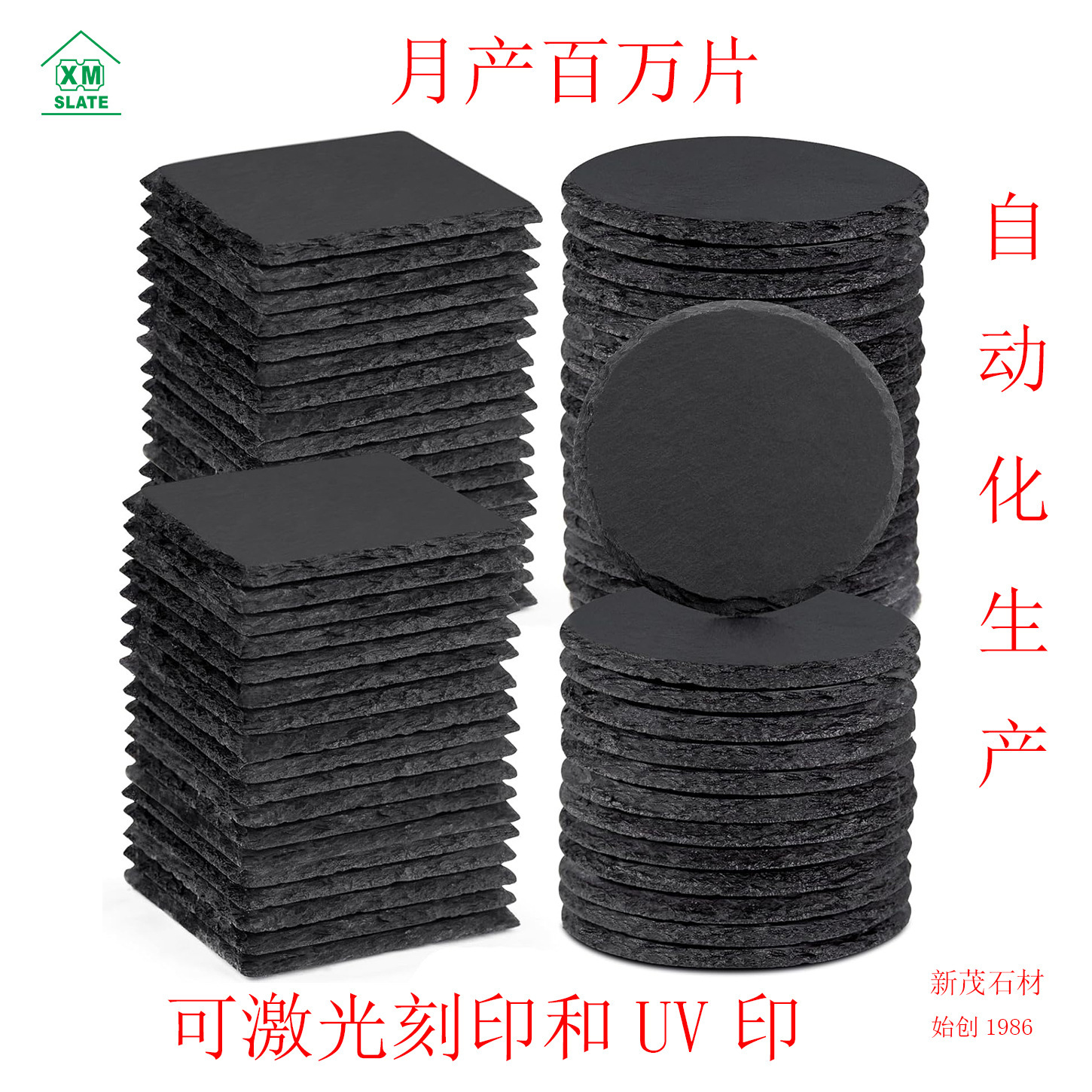 优惠小额批发汇总跨境深黑色板岩杯垫石板杯垫石杯垫常期备货