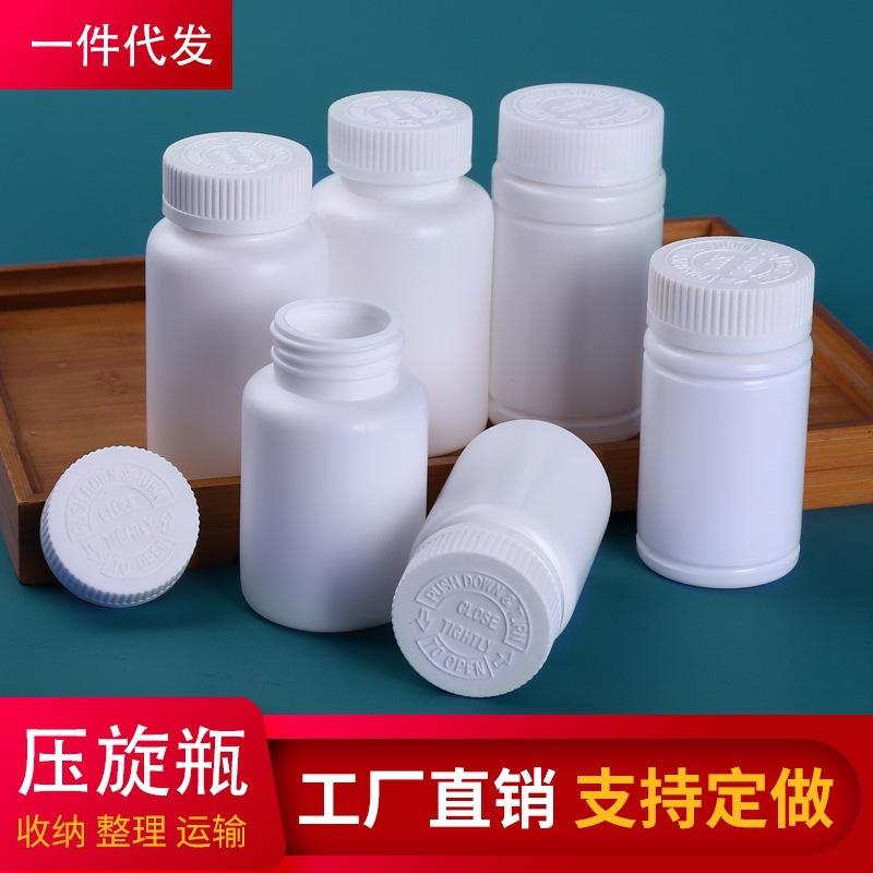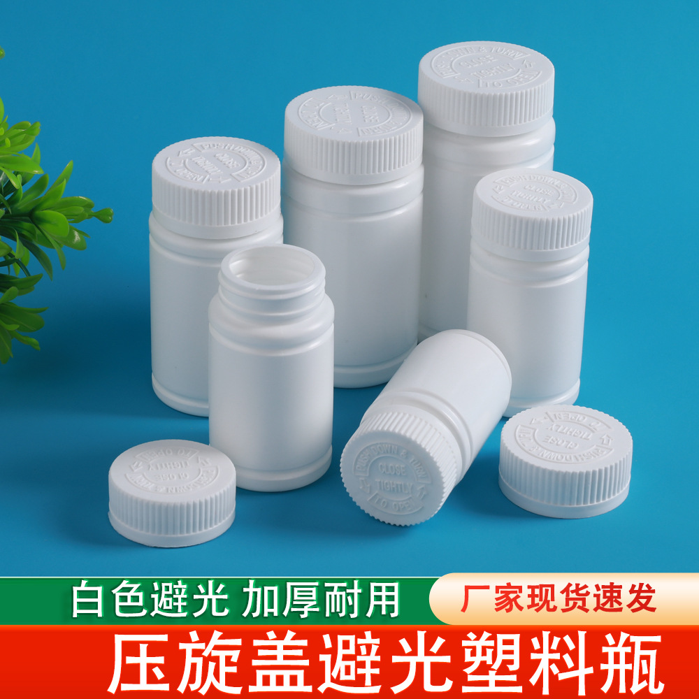 錠剤瓶100-300mlプラスチック瓶圧着スクリューキャップメーカー白色遮光固体広口包装竹節瓶