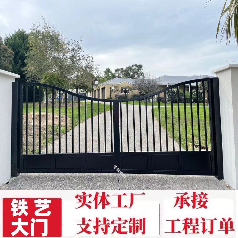 高端别墅庭院大门锻打欧式铁艺大门出口花园复古双开门