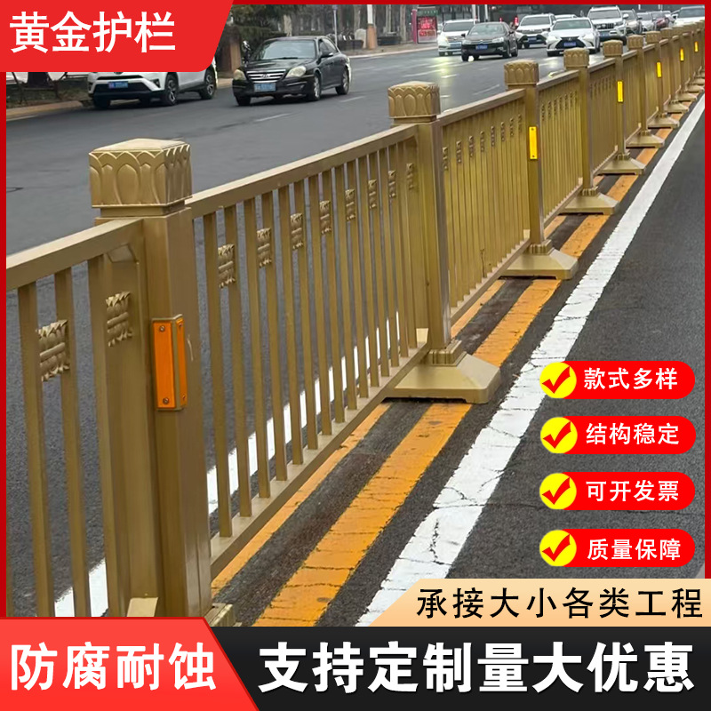 黄金莲花道路护栏防撞文化围栏金色交通隔离围栏公路中心防护栏杆