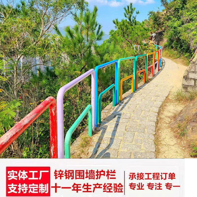 锌钢彩虹景区栏杆彩色河道护栏幼儿园七彩围栏