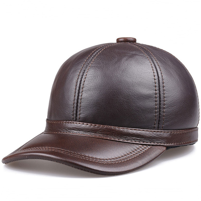 头层牛皮棒球帽真皮帽子男冬季中老年男帽冬天鸭舌帽老人保暖护耳