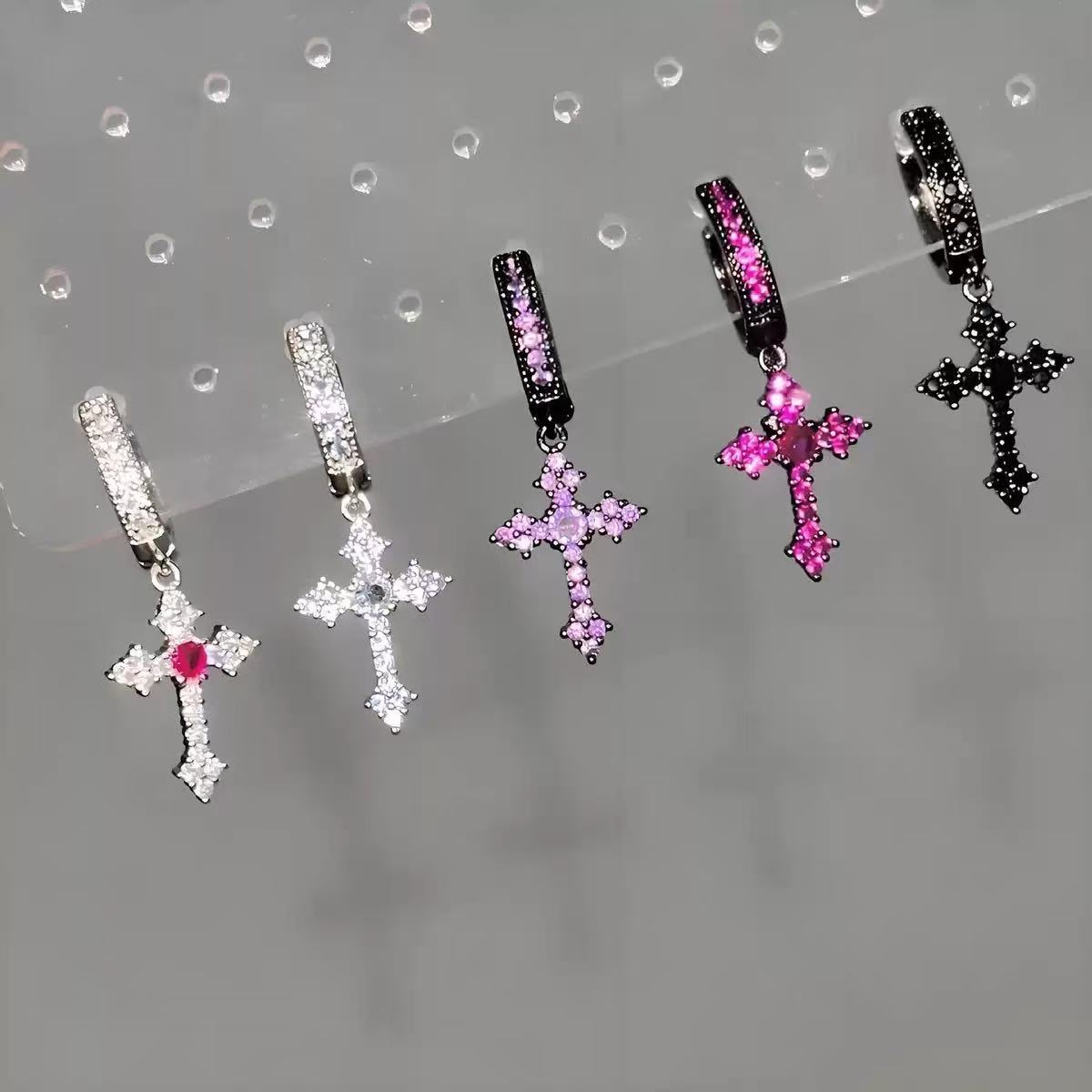 甜酷辣妹中古彩色十字架耳环女高级感独特个性甜酷风精致耳钉耳饰