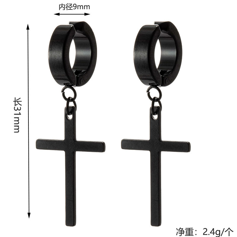 十字架耳钉男欧美嘻哈痞帅小众设计无耳洞耳夹冷淡风男生耳坠