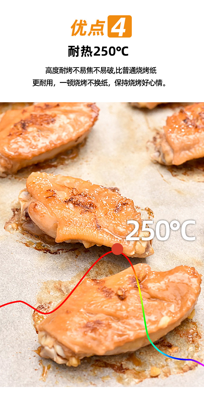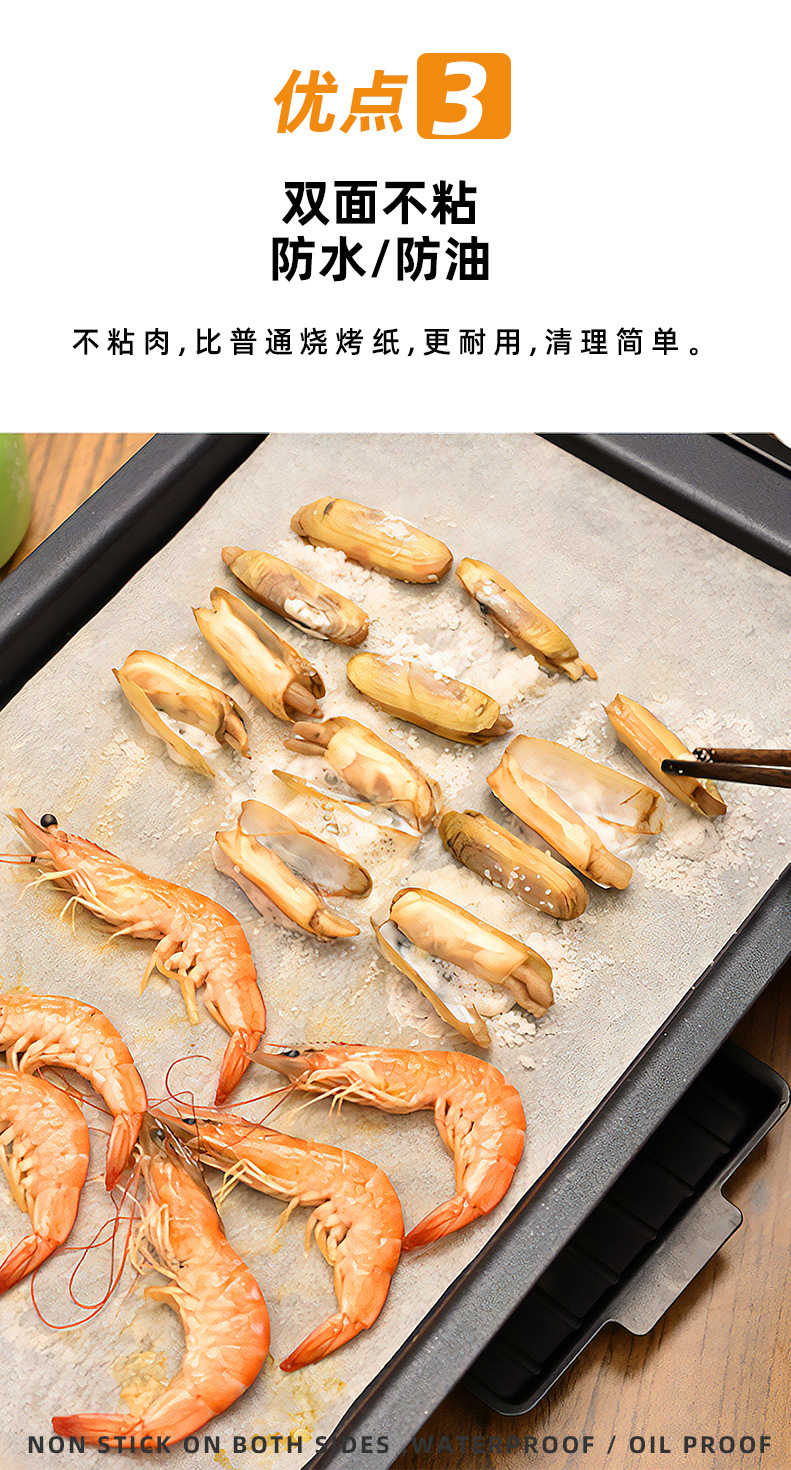 特徴1 防油防粘耐高温バーベキュー紙