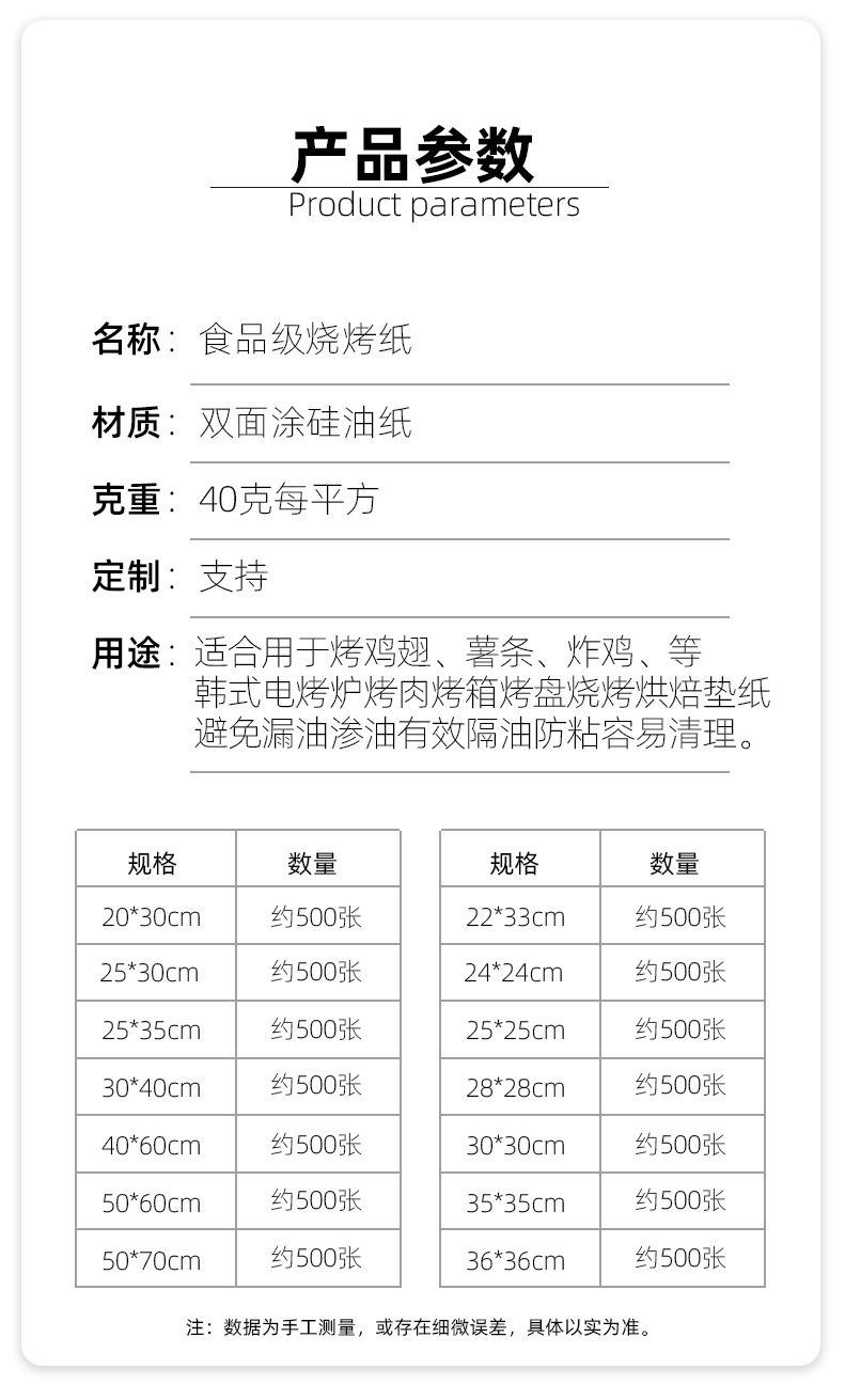 烤肉纸烧烤商用烘焙纸防粘食品级硅油纸烤箱烤盘垫纸专用托盘油纸