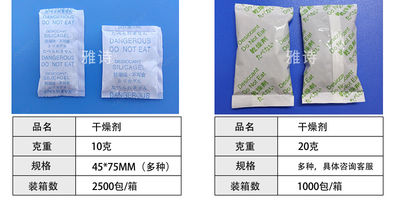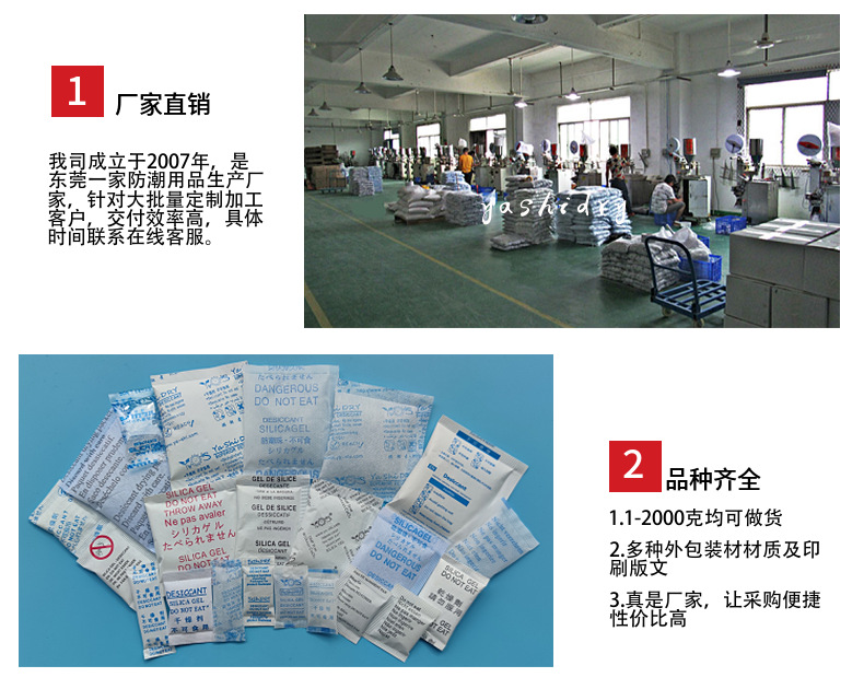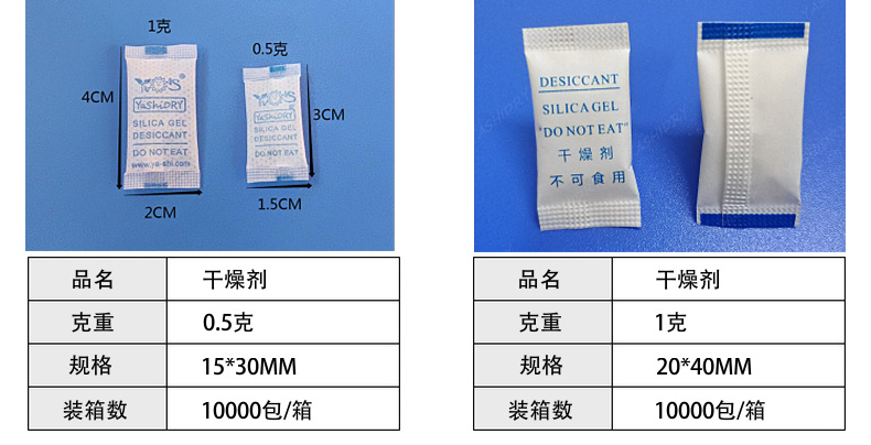 雅詩1グラム全英語シリカゲル乾燥剤、各種外装鉱物乾燥剤、小包装防湿ビーズ