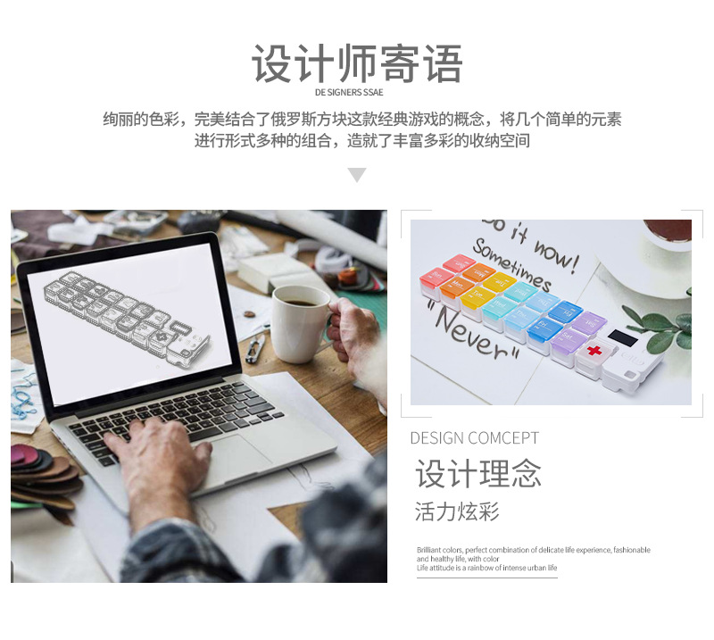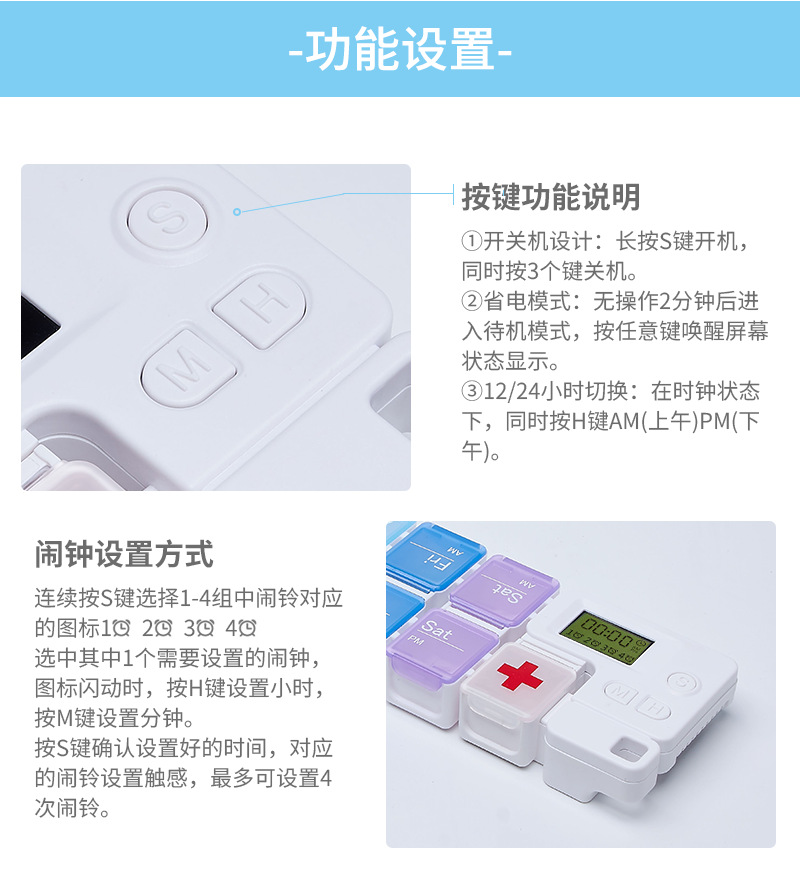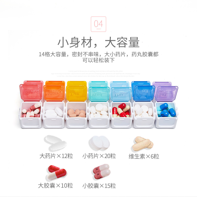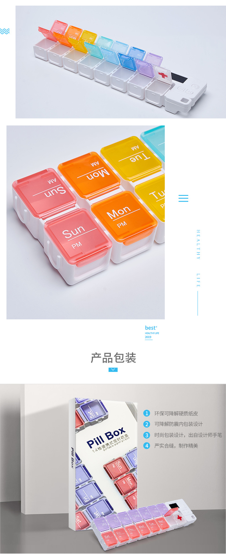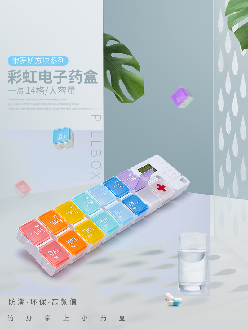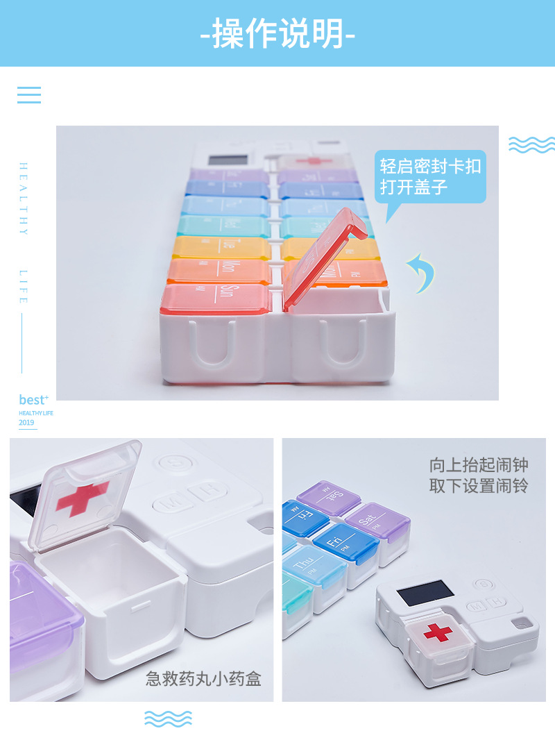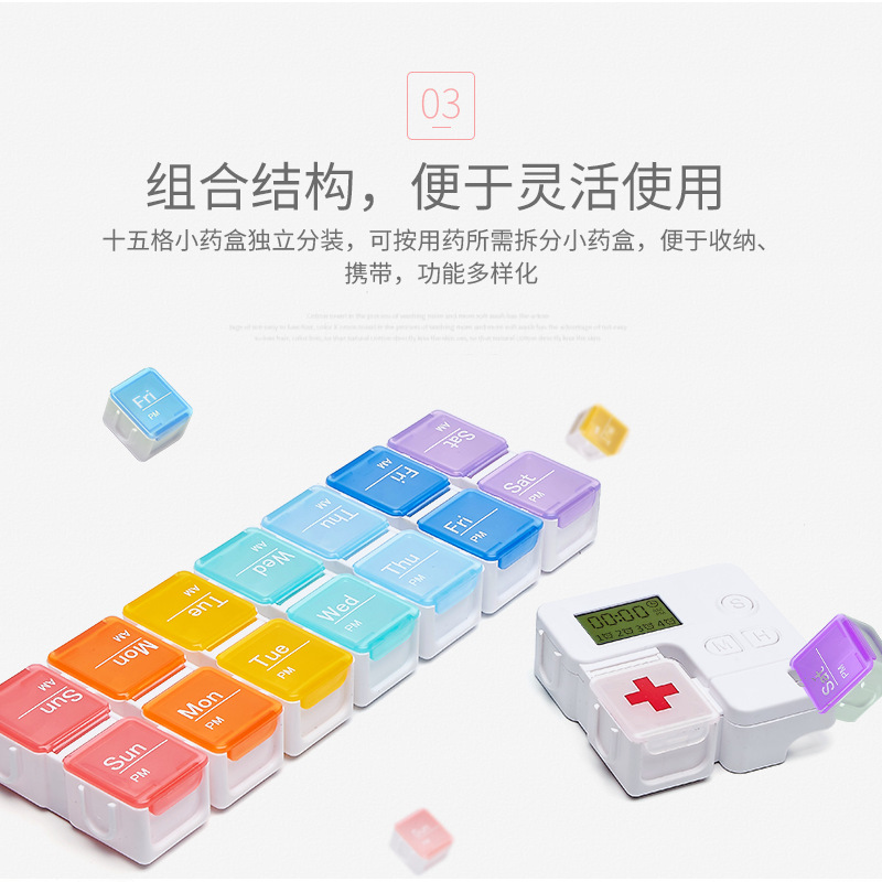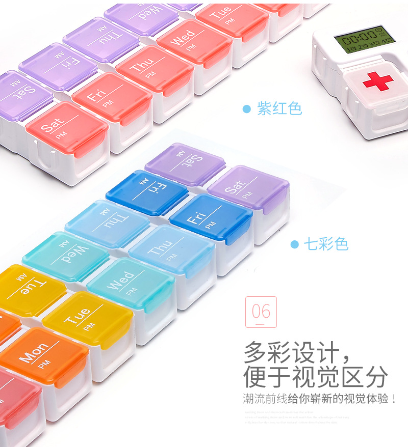 14格一周智能定时提醒电子药盒 便携分格分装药品药丸收纳盒