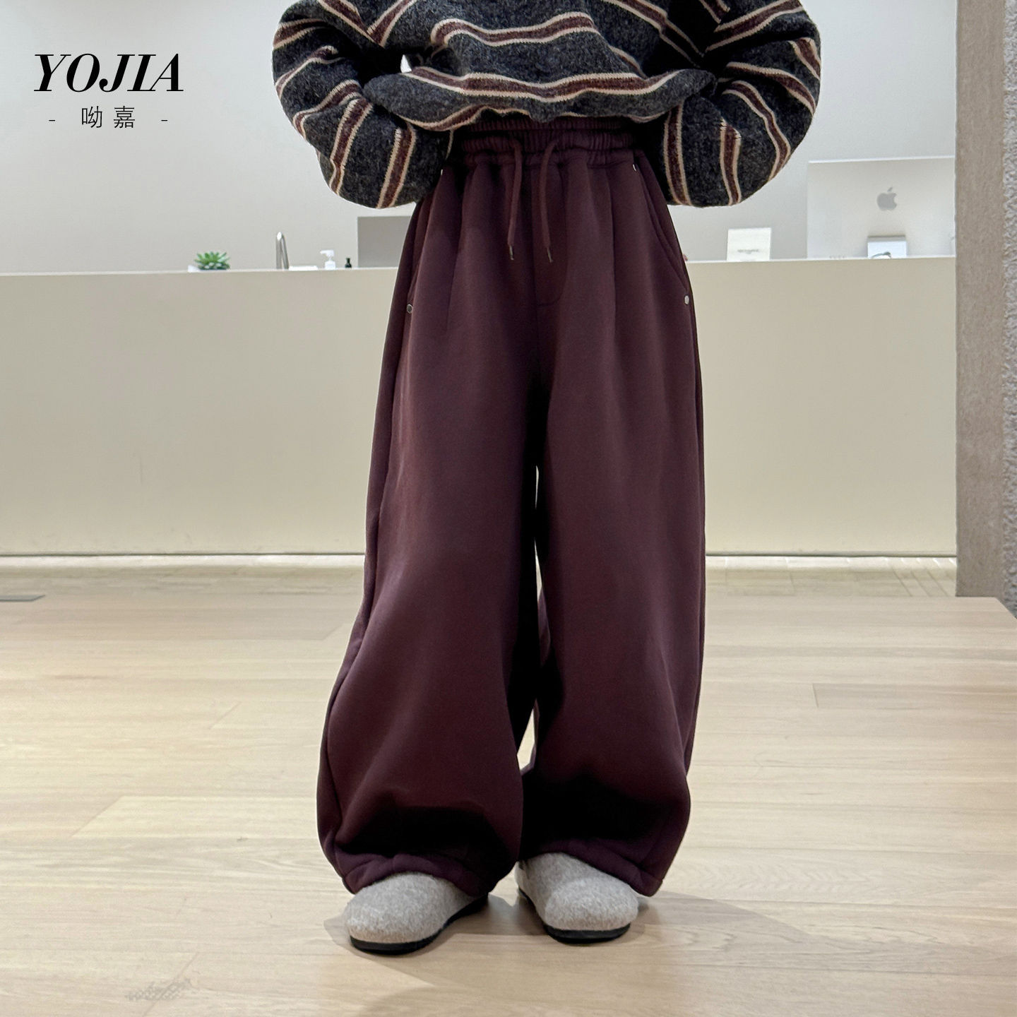 YOJIA女童卫裤秋冬2025新款洋气宽松小女孩长裤加厚儿童裤子冬装