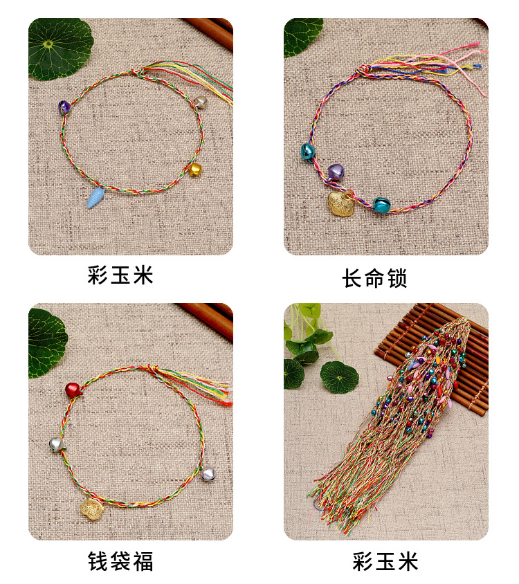 ソースメーカー端午節カラフルな糸ブレスレットカラフルなロープベルぶら下げゴールドブレスレットアンクレットロープ卸売