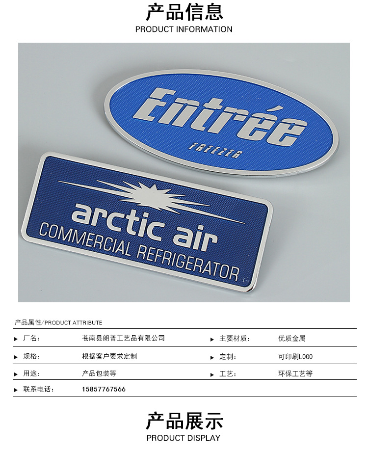 亜鉛合金銘板メッキ家電金物商標錆鋼ラベル企業製品ロゴ金属銘板メーカー