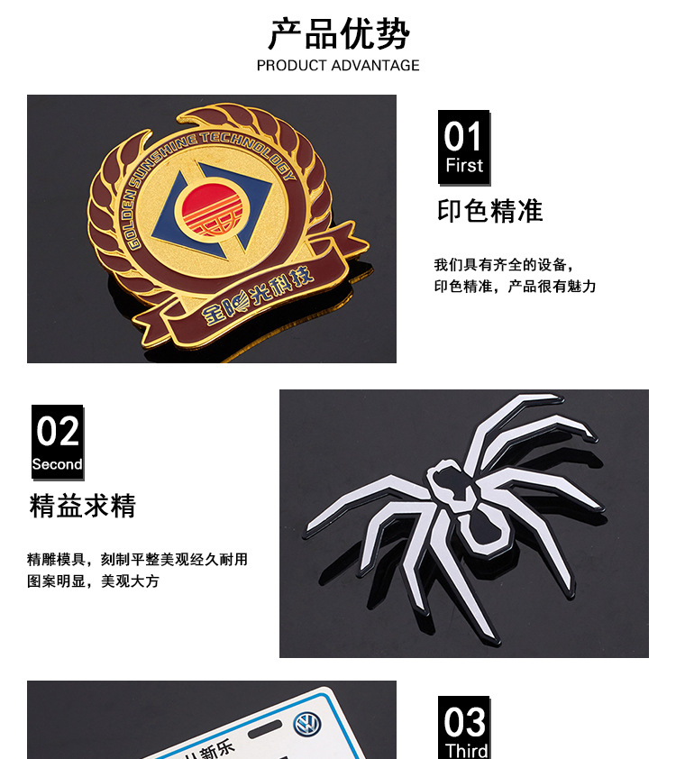 バッジメーカー生産亜鉛合金銘板金属ブローチメッキ塗装車標化粧品包装ロゴ
