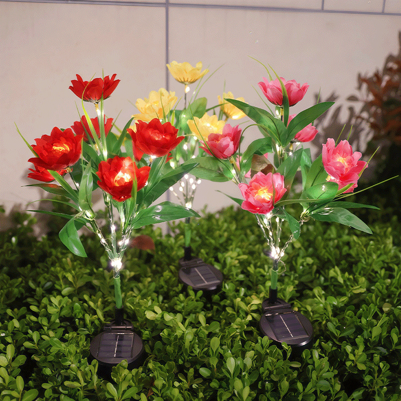 LEDソーラーチューリップ芝生ライト、別荘庭園用LED3灯フラワーライト照明、ソーラーパネルガーデンライト