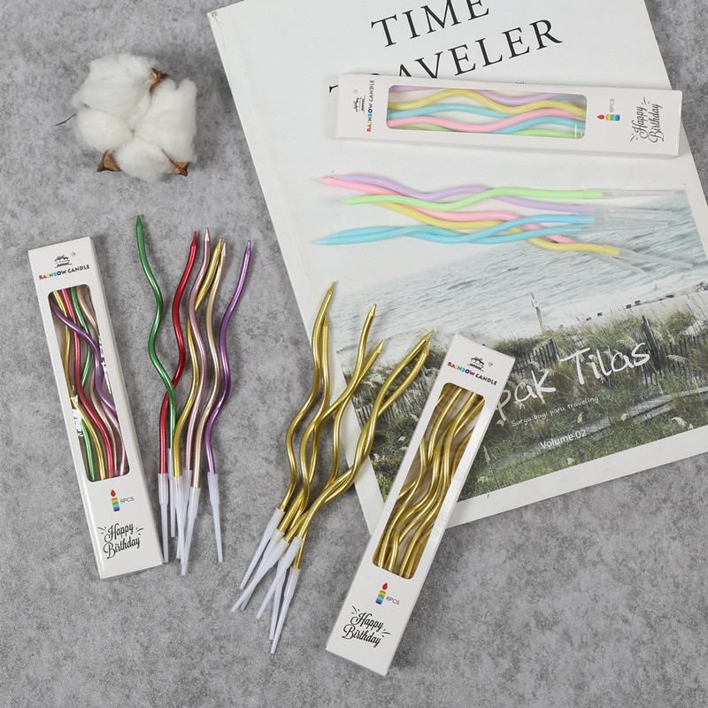 誕生日キャンドルスパイラル波曲線状細長いカラーメッキキャンドルウェディング誕生日パーティーケーキ装飾