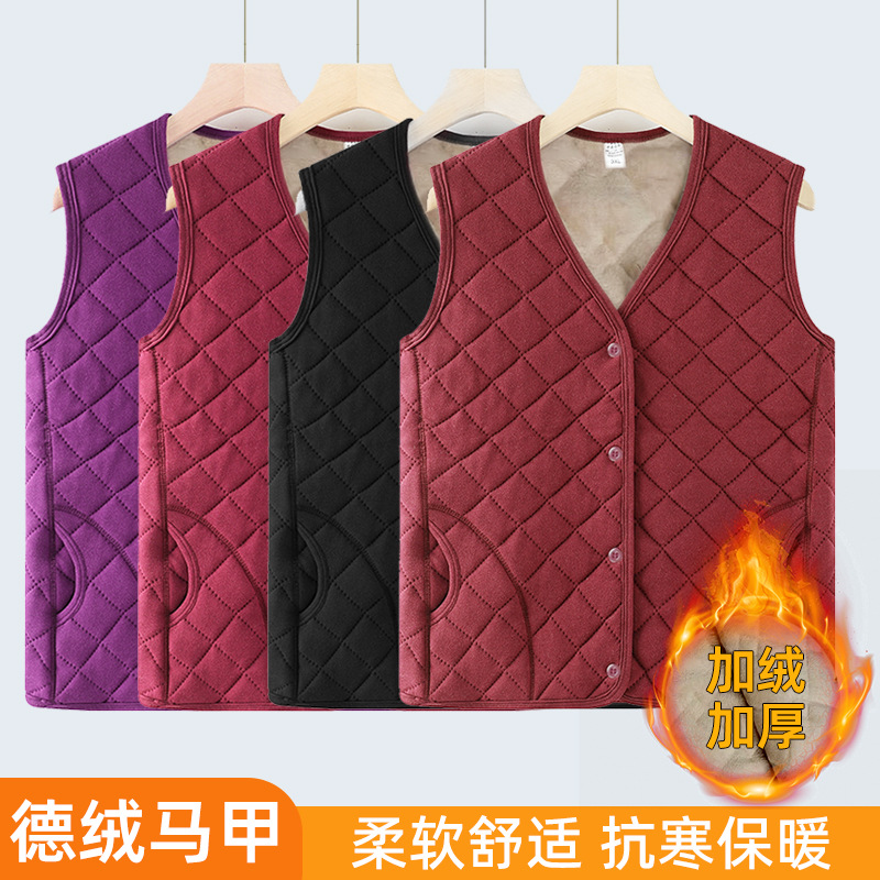 2024秋冬の新型のベルベットの馬甲の女性の中高年のお母さんの馬は保温の小さい香りの風を挟んで外に洋気の肩を着ます。