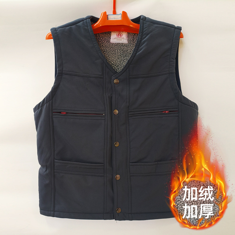 中老年男士马甲秋冬季加绒加厚保暖棉背心多口袋坎肩钓鱼摄影马夹