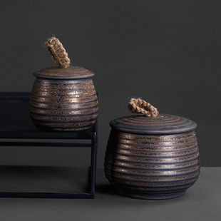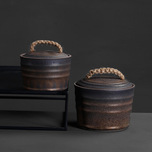 レトロ粗陶茶葉缶プーアル茶缶陶磁器密封缶家庭用茶葉貯蔵缶収納缶ギフトボックス
