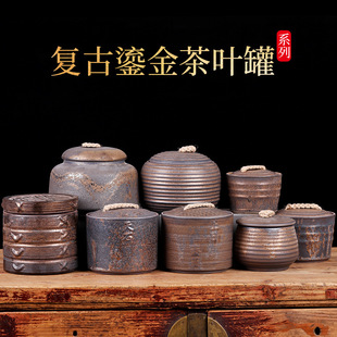 卸売り防湿粗陶茶葉缶金広口保存缶レトロ創意密封プーアル茶餅保存缶
