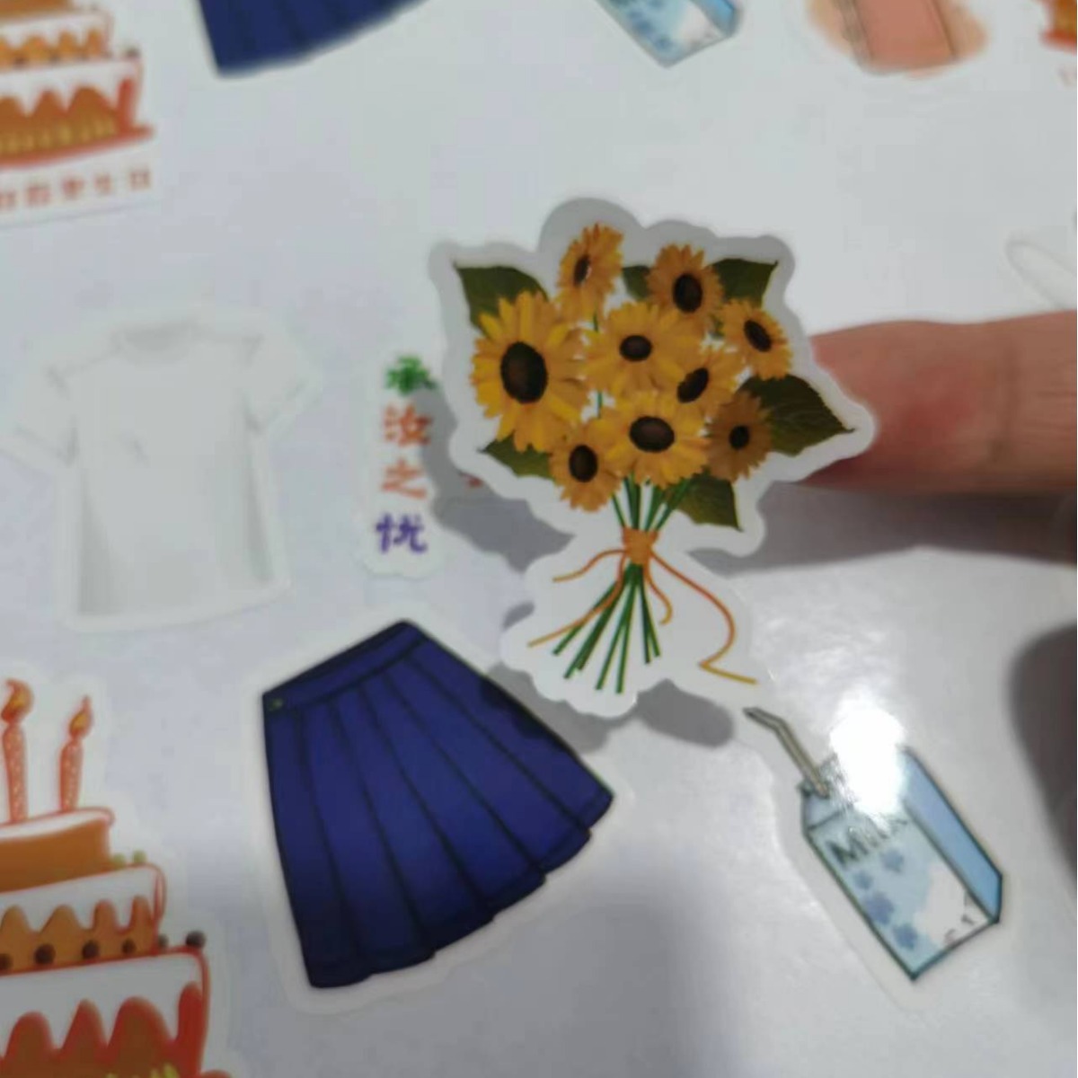 フロストpvcプラスチック漫画ステッカー異行ラベルシールカスタム防水シールラベル印刷ロゴ