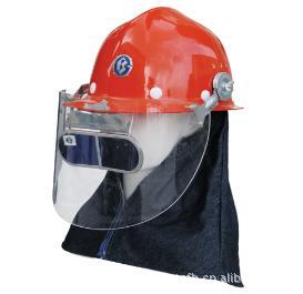特性:八点双层编织带帽衬,一指键或旋钮调节,Y型全面下颏带,通过定制金属件与面屏连接,阻燃披肩布固定在帽衬上,祈祷头,面和颈部的防护作用。
