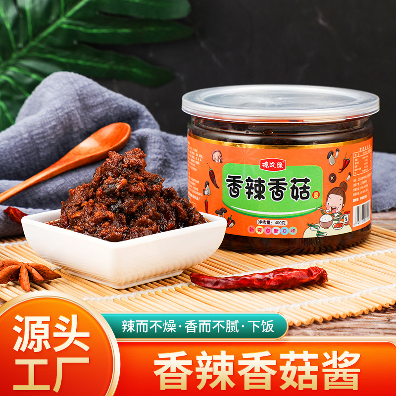 辛いキノコソース400グラム缶入りご飯と麺ソースの卸売り辛い料理の味付けキノコソース