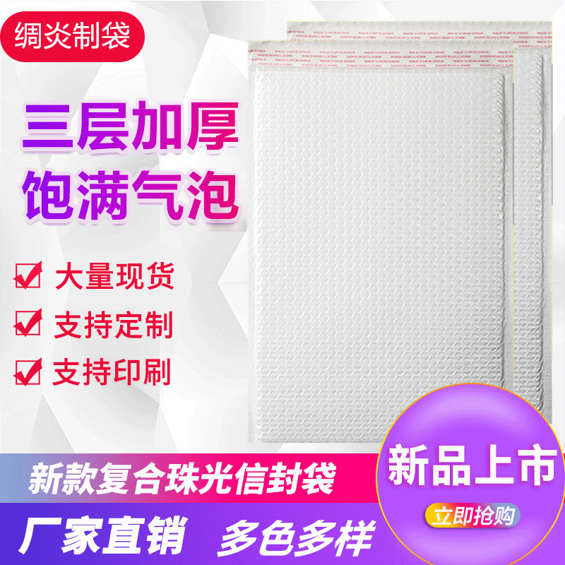 電気商専用直販印刷珠光膜カラー気泡袋服装宅配包装袋防水気泡膜封筒