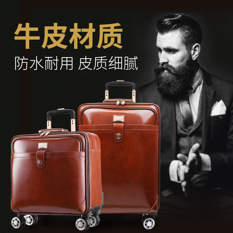 高级感キャリーバッグ20インチ树高皮磨きトロリーケース本革多机能大容量アルミフレームスーツケース男