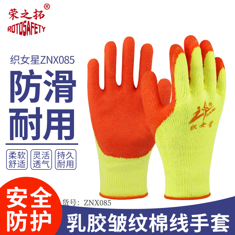 女の星の労働保護の手袋を織って耐摩耗性の綿の線にゴムを浸して滑り止めを切って厚いガラスの仕事を厚くすることを防ぎます。