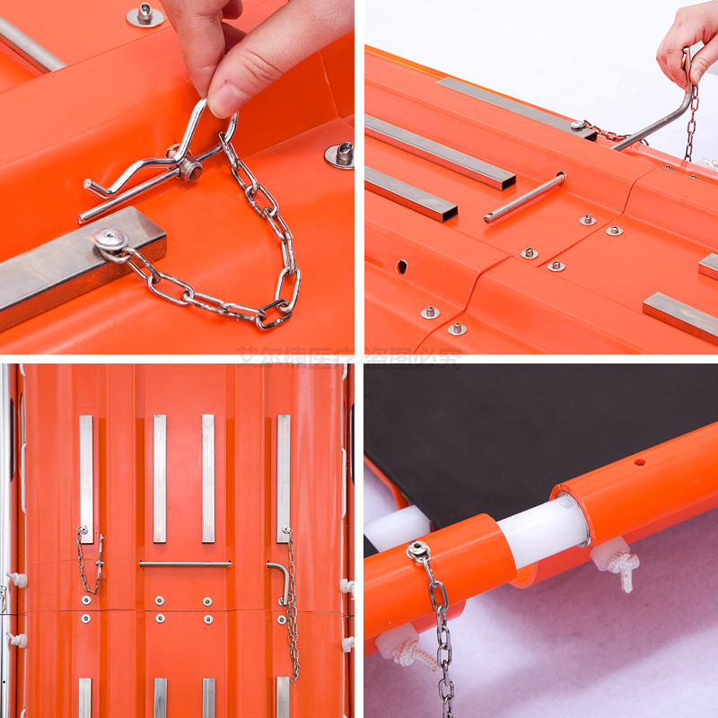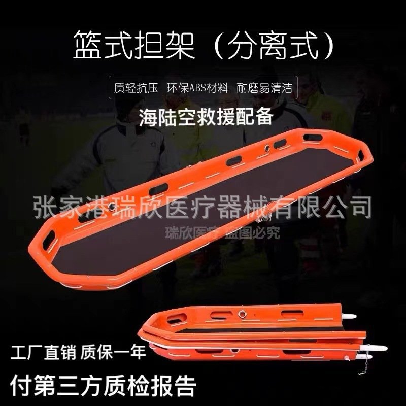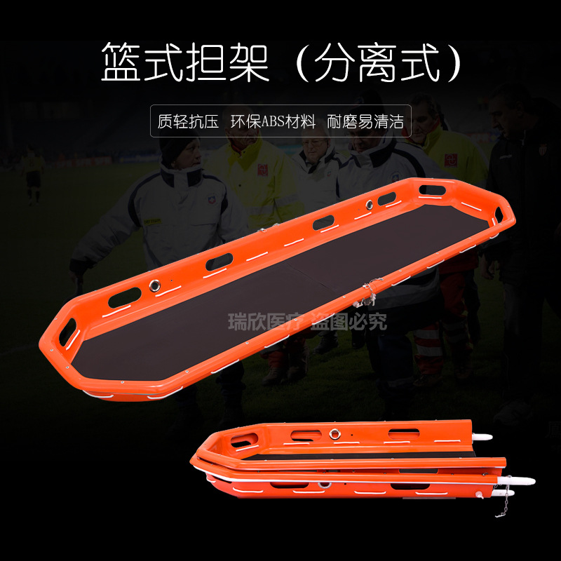 ABS製吊り下げ式担架、オレンジ色、分解可能、分割式救急バスケット、船型、高所垂直救助隊用、取り外し可能