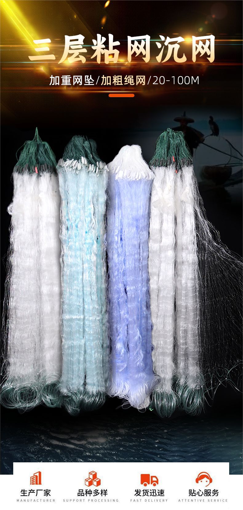 ワイヤーメッシュ漁網、三層粘着ネット、三層漁網、三層ワイヤーフローティングネット