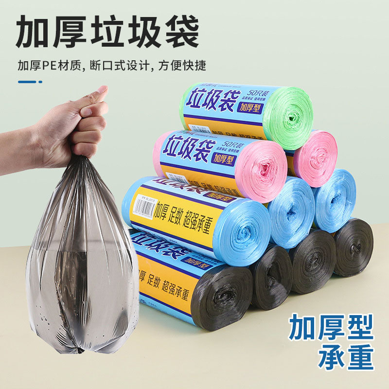 批发45*50cm超市家用连卷点断式平口垃圾袋一次性加厚分类塑料袋