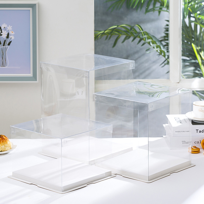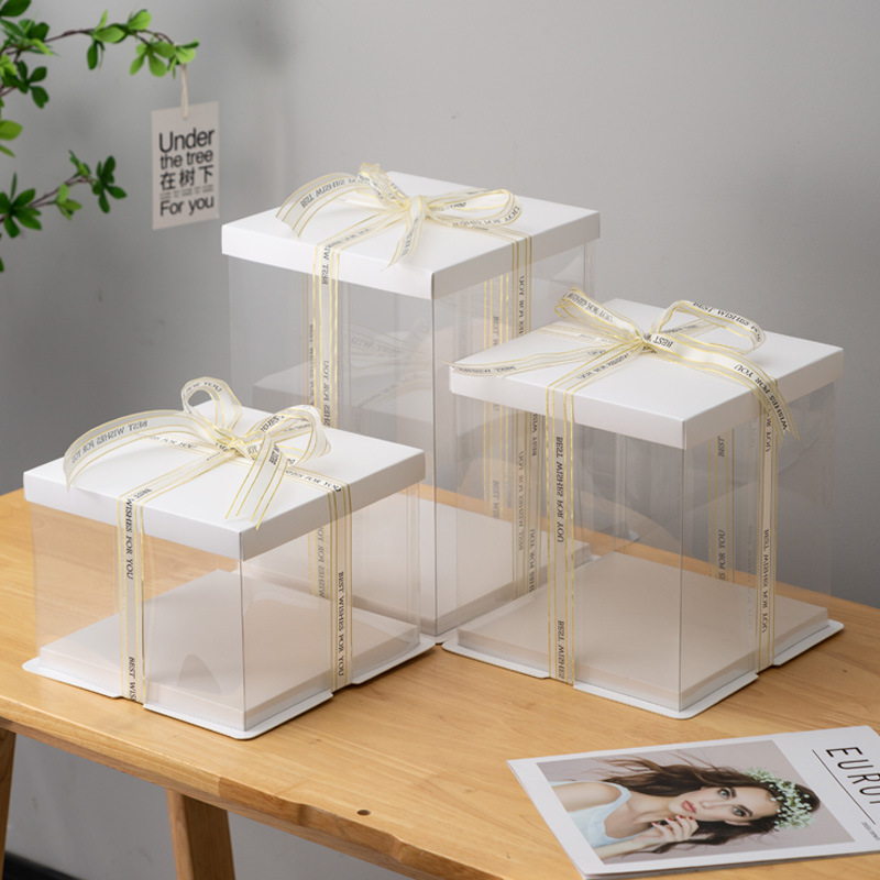 4インチ、6インチ、8インチのケーキボックス、プラスチックカバー付き、高さのある包装、誕生日用透明ケーキボックス、卸売
