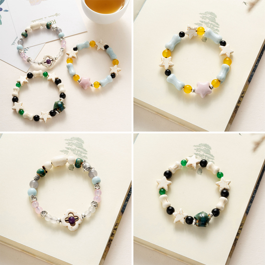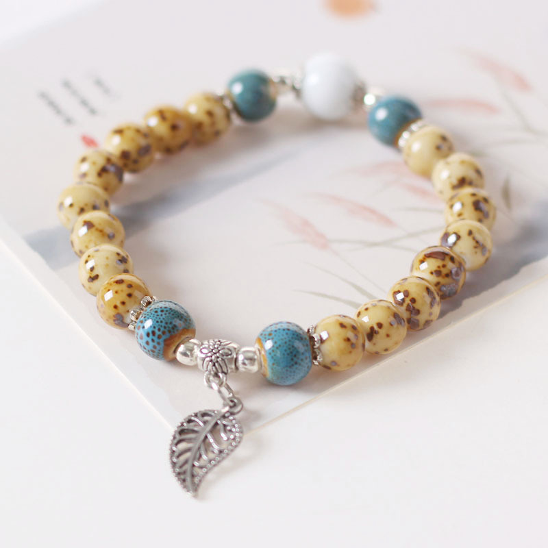 柯柯民族古風アクセサリー景徳鎮陶磁器アクセサリー学生の女性ビーズブレスレットは簡単に露店します。