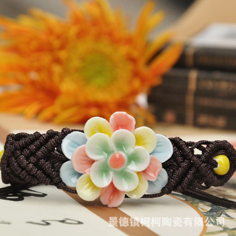 陶磁器のブレスレットの民族風景徳鎮の手編みの花のブレスレットの手工芸品のカラーの花のブレスレットの陶磁器の装飾品