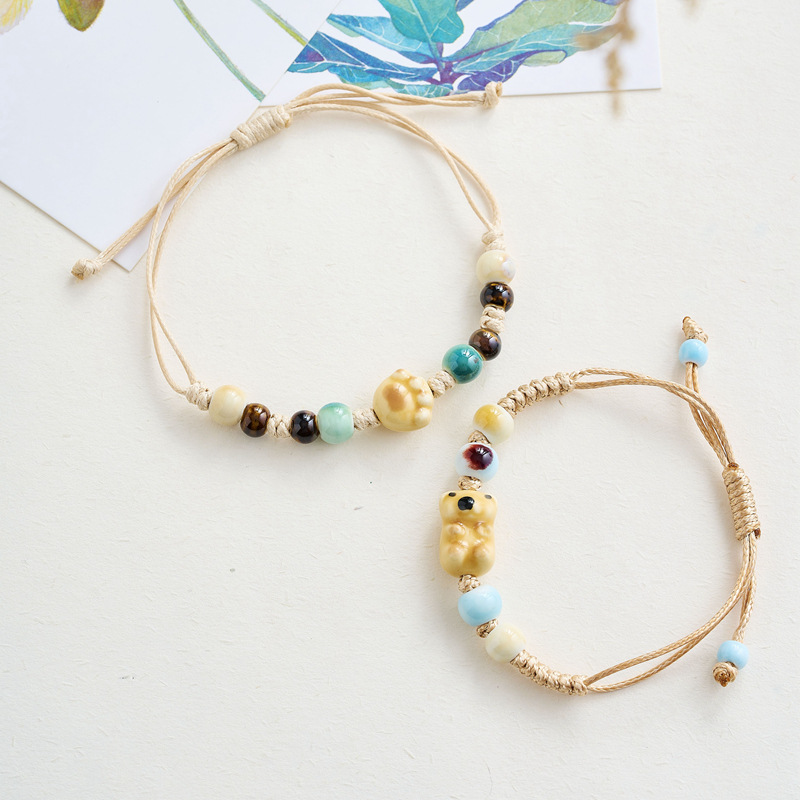 景徳鎮陶磁器アクセサリー手作りオリジナルブレスレットかわいい熊学生女子生中継出店商品プレゼント