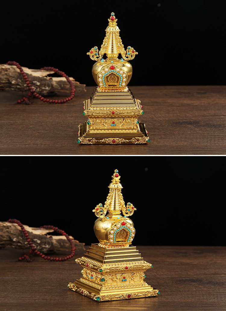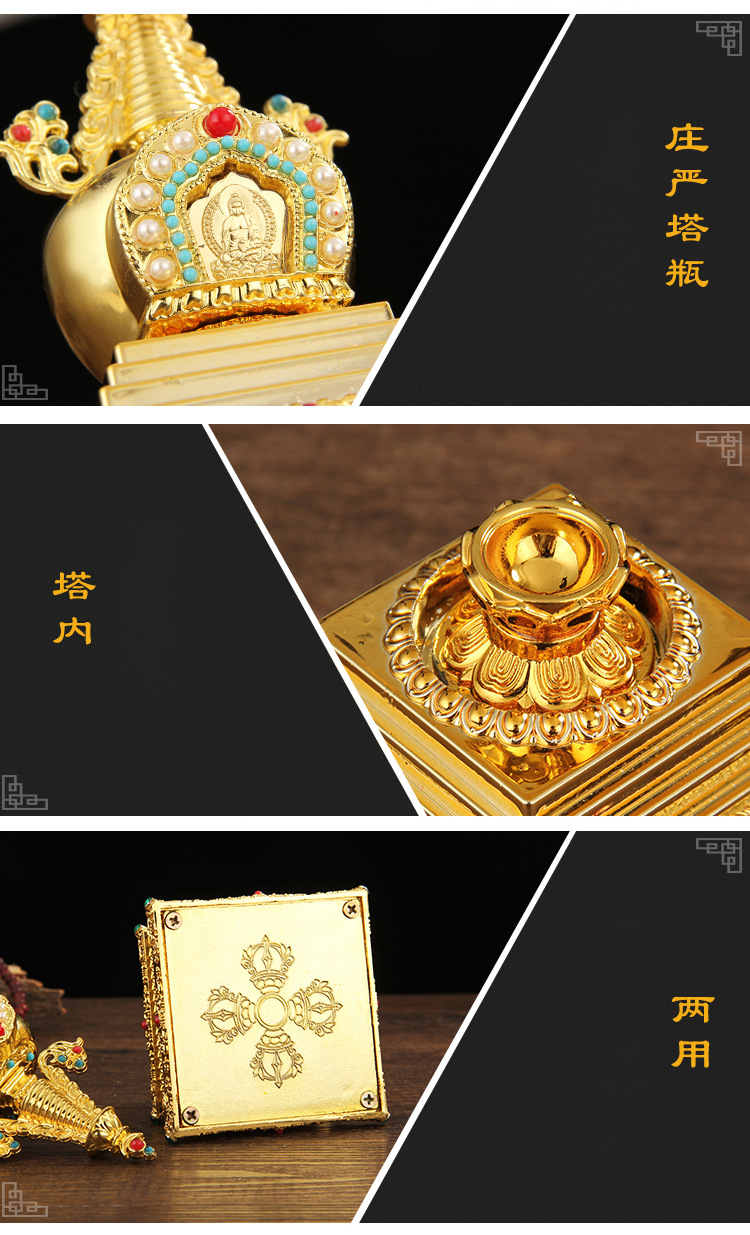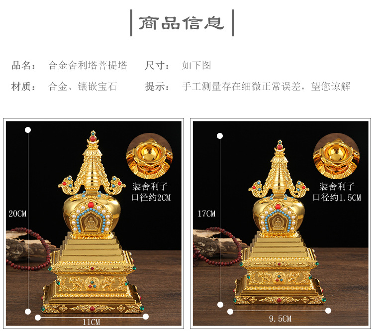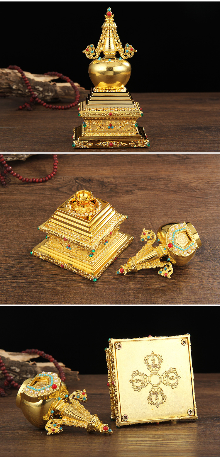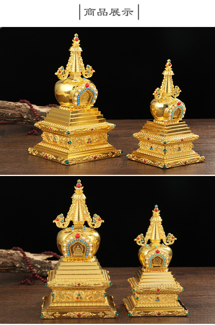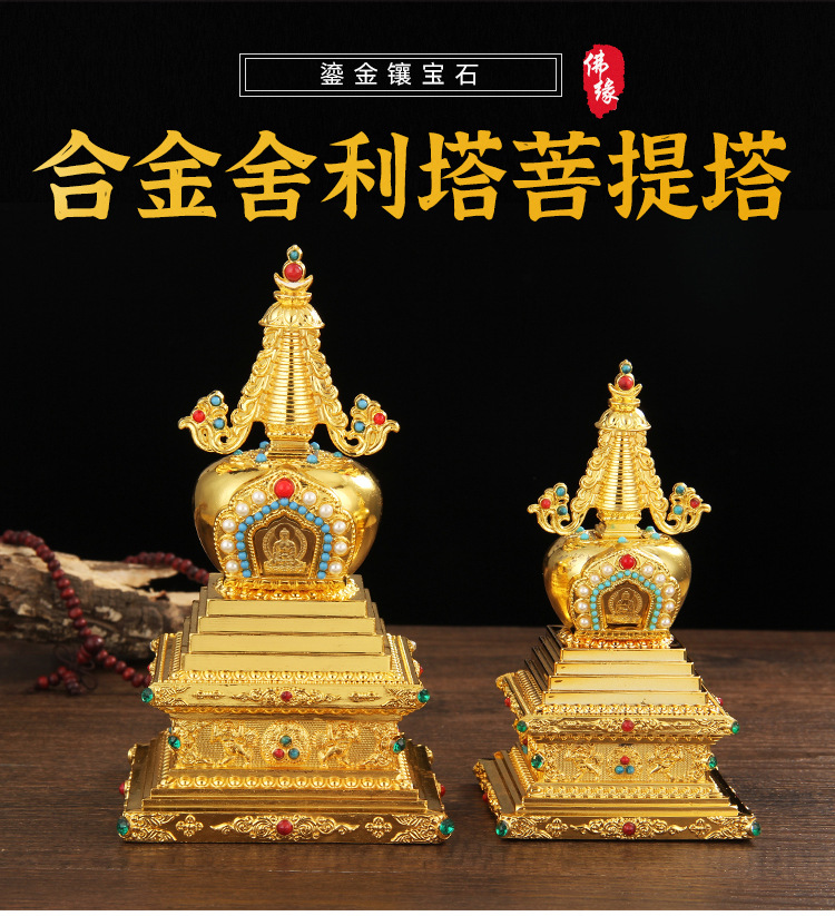 舎利塔装蔵舎利子ガウ箱高さ17センチ亜鉛合金金置物菩提塔