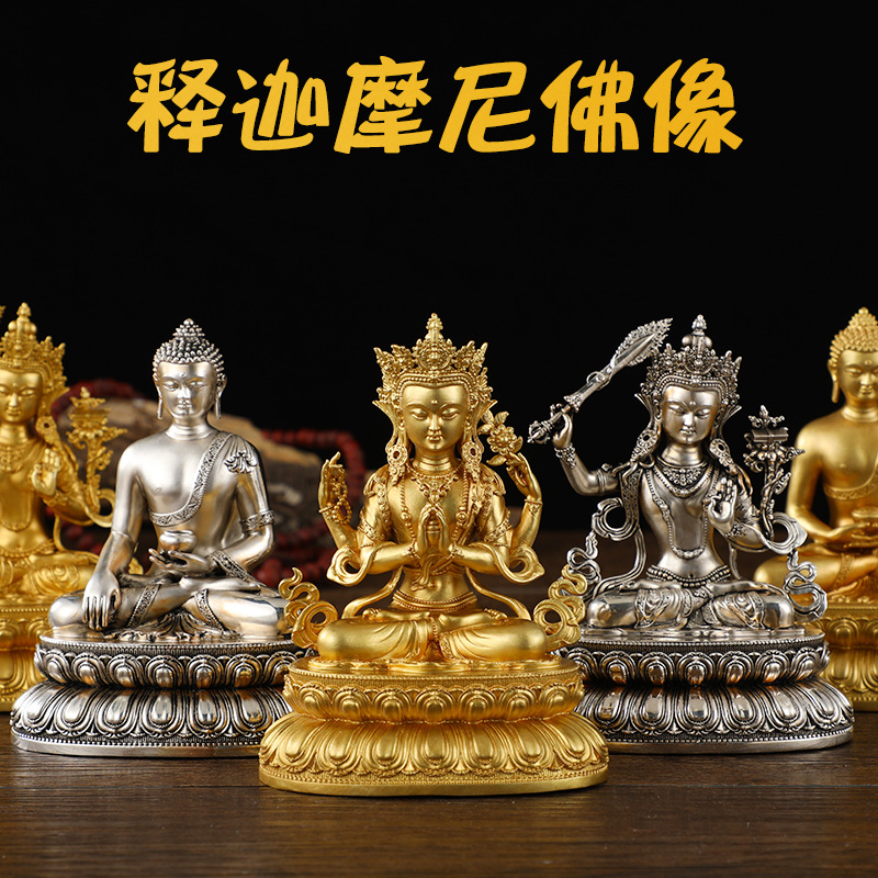 10cm黄銅銀仏像釈迦薬師黄財神蓮花生四腕観音文殊地蔵家庭用置物