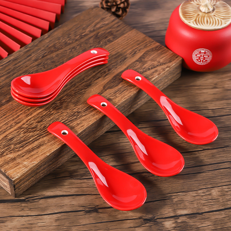 厂家直销婚庆红色陶瓷汤勺、喜庆酒红色陶瓷调羹、婚庆大红色陶瓷勺子,物美价廉,适合婚庆礼品陶瓷配套,质量保证