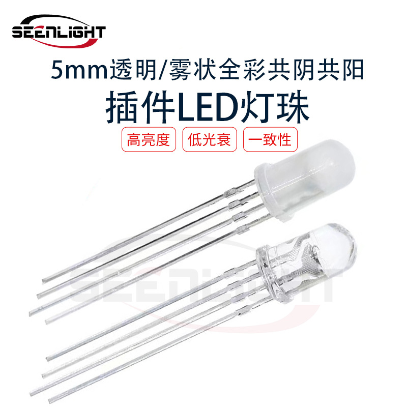 メーカー5mm透明霧状フルカラーrgb共陰共陽led電球f5四脚フルカラー発光管ダイオード
