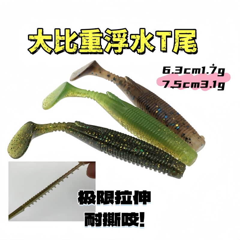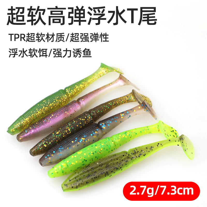 7.5cm 3g开槽路亚T尾软饵一包8只装