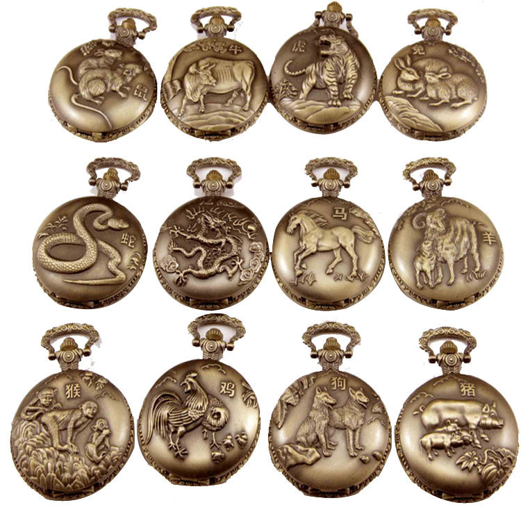 露店懐中時計12年生肖記念懐中時計ネックレス復古大懐中時計12年生肖懐中時計大懐中時計