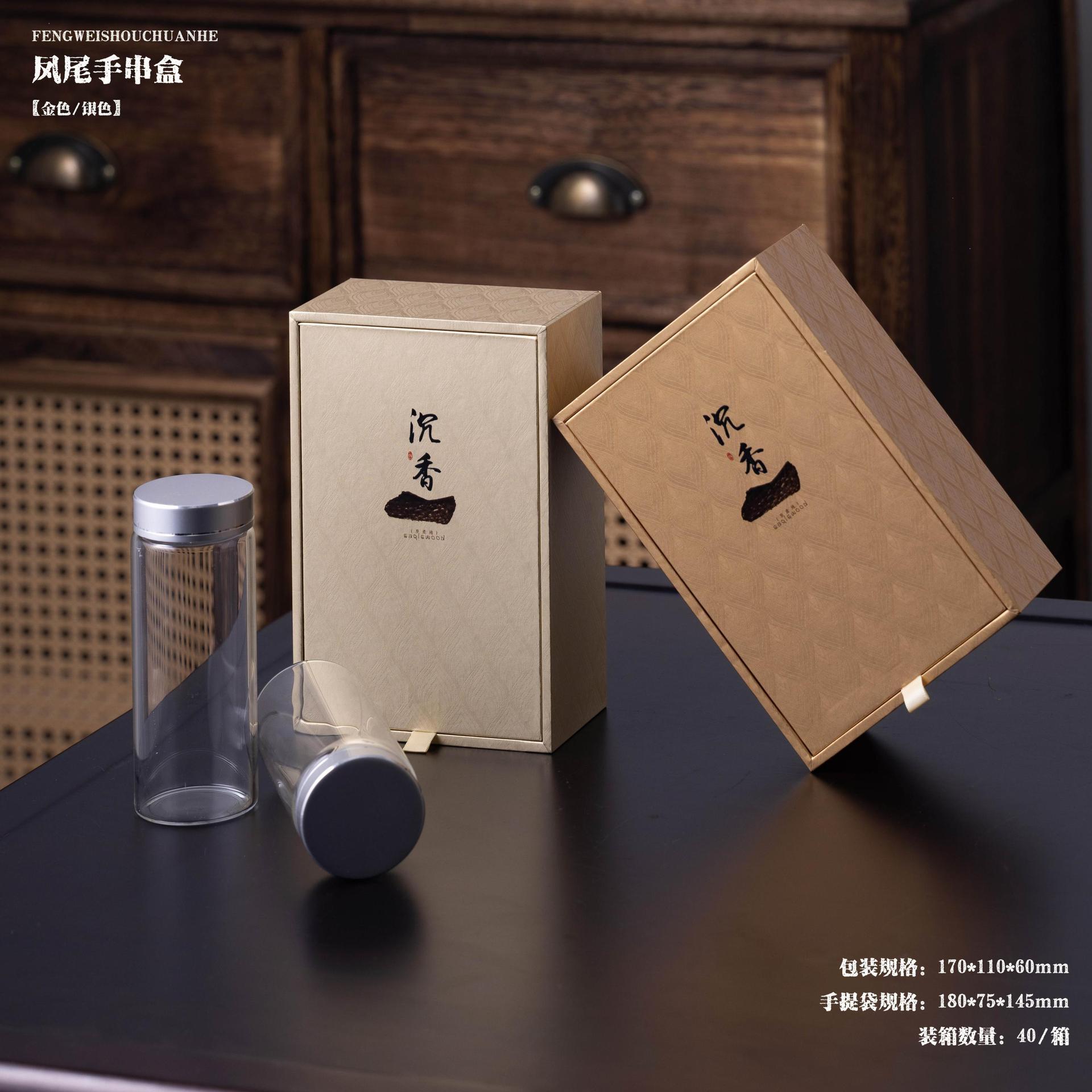 新品现货凤尾手串包装盒高档古法首饰盒沉香佛珠翻盖文玩手串盒