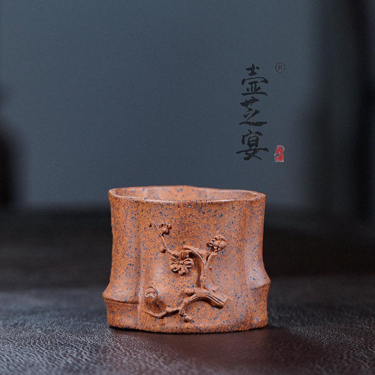 壺芝宴の主人杯宜興紫砂杯カップカップ口杯茶器茶道茶器純手作り彫刻